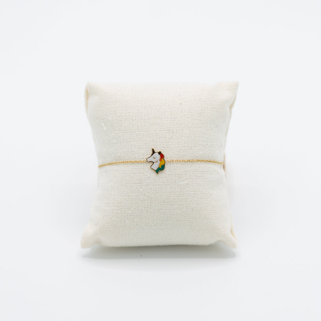 Fijn armbandje met eenhoorn, ideaal om te combineren met een paar eenhoorn-oorbelletjes (setje).