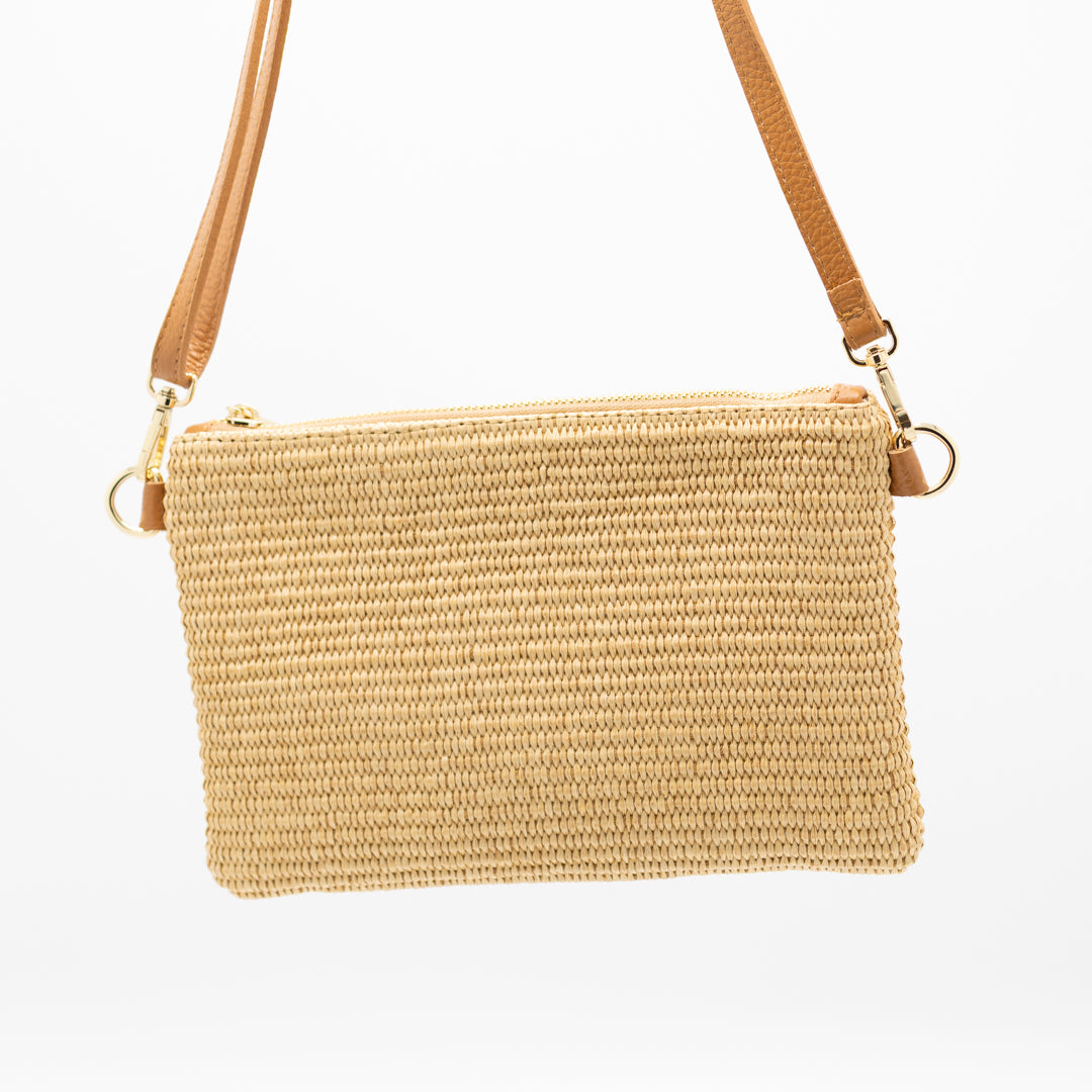Gemaakt van licht en duurzaam raffia, straalt deze tas een relaxte, bohemian charme uit, terwijl het neutrale beige makkelijk te combineren is met elke outfit. Ondanks het kleinere formaat biedt ze genoeg ruimte voor je essentials zoals je telefoon, portemonnee en sleutels.