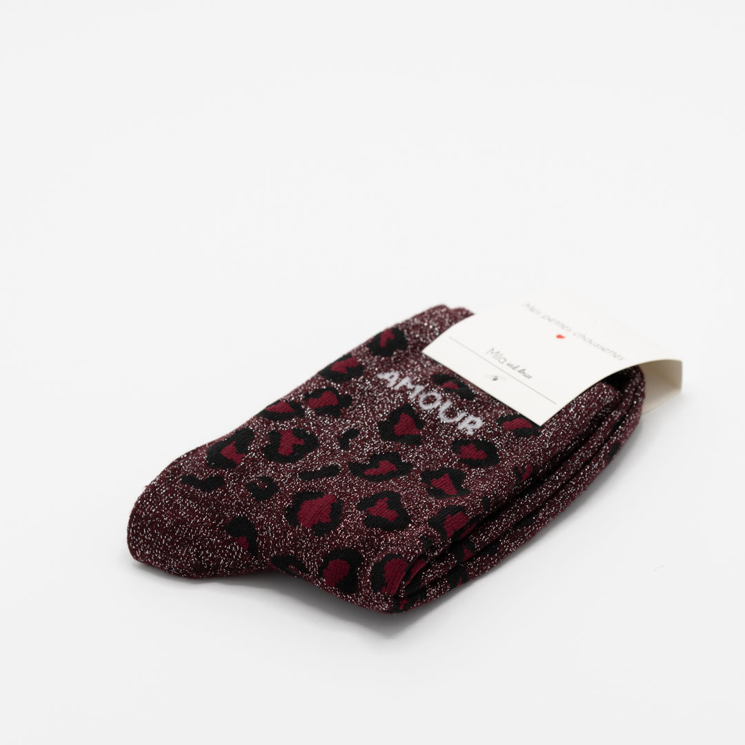 Bordeaux, hippe sokken met opschrift AMOUR