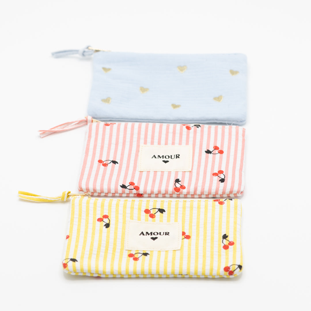 Dit etui met gouden hartjes straalt vrolijkheid, elegantie en liefde uit. Perfect om je essentials in stijl op te bergen - van make-up tot sieraden of schrijfgerief. Het kan ook perfect gebruikt worden om een kadobon in te verpakken.