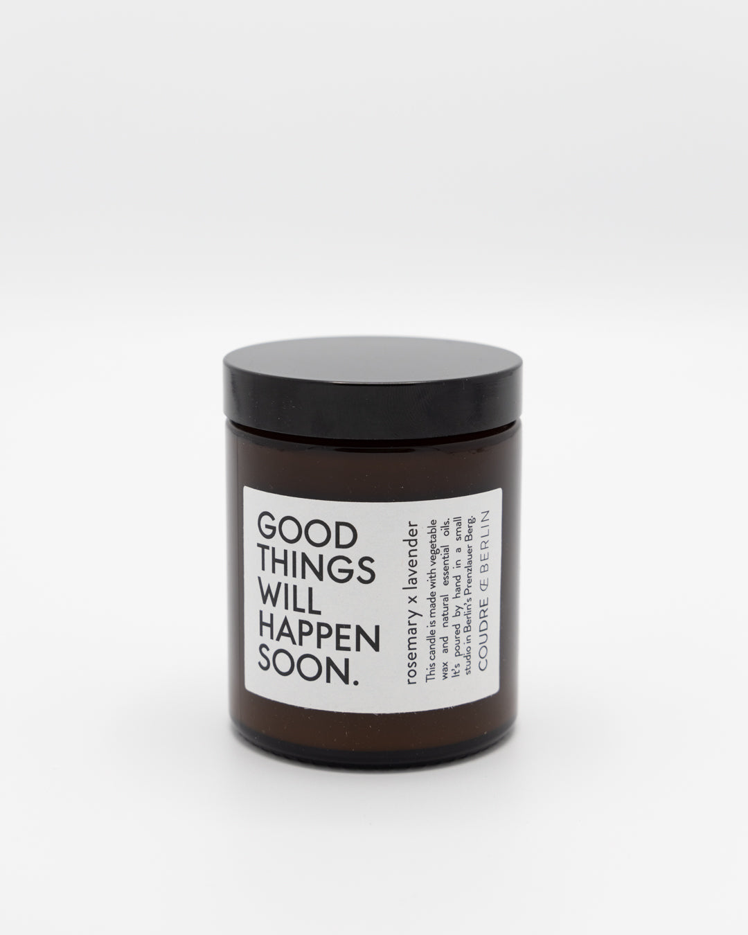Gegoten in een stijlvol donkerbruin glazen potje, met opschrift 'Good things will happen soon', past deze kaars in elk interieur. Deze kaars is gemaakt van oa sojawas en natuurlijke etherische oliën.