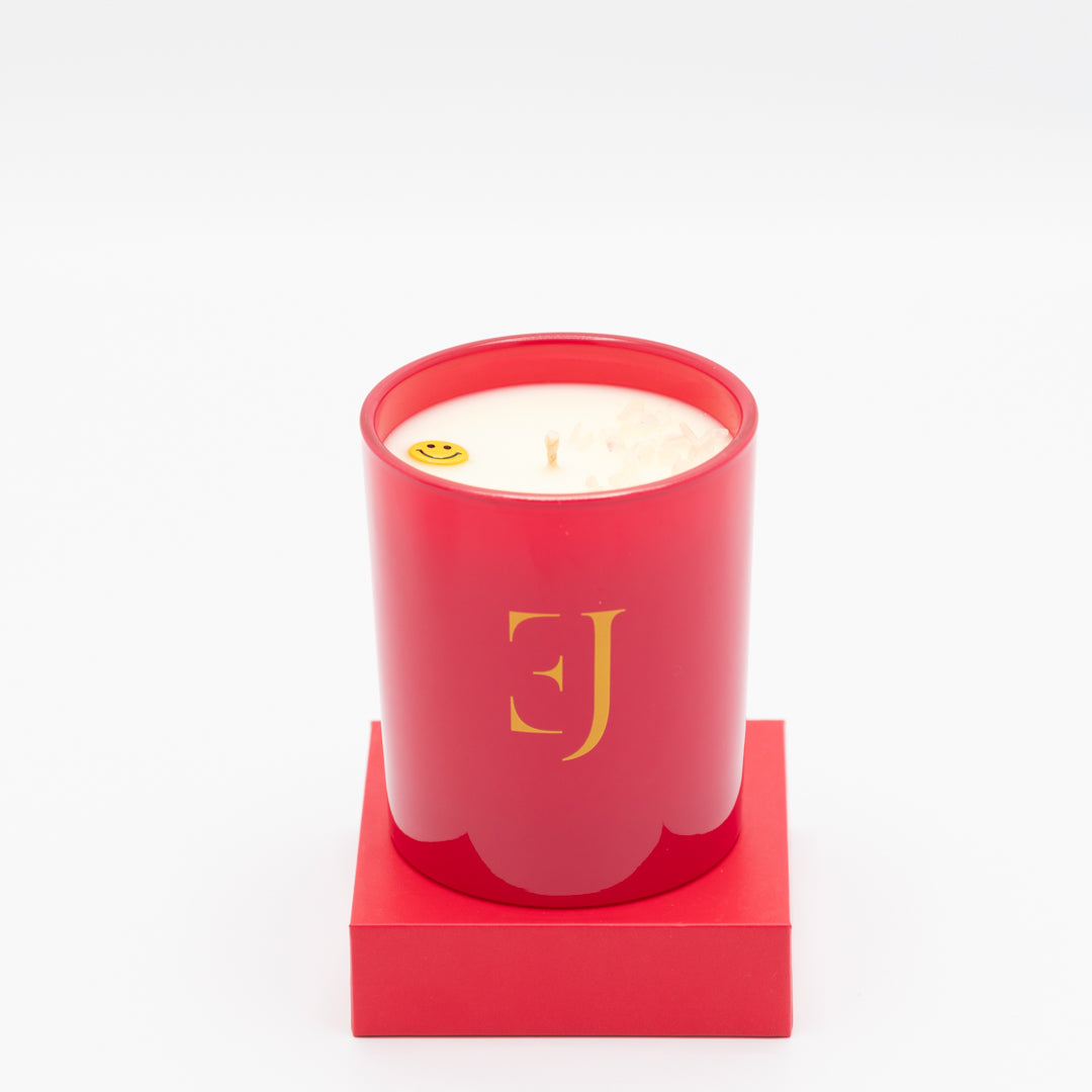 Deze vrolijke rode geurkaars met roze kwarts met een schattige smiley tovert direct een lach op je gezicht. De warme, fruitige geur vult de ruimte en zorgt voor een instant goed gevoel – perfect om even helemaal op te laden. Maar dat is nog niet alles…