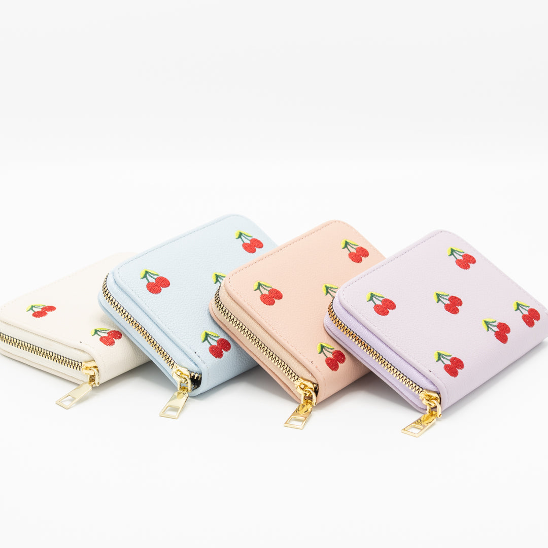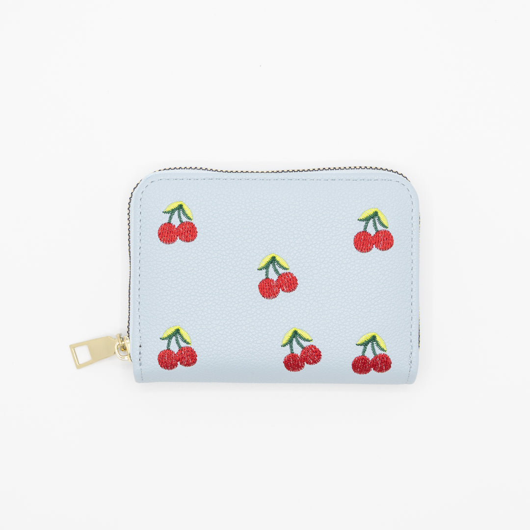 Voeg een speelse touch toe aan je look met deze leuke portefeuille met kersenprint! Het frisse ontwerp met rode kersen op een subtiele achtergrond maakt deze portemonnee een echte eyecatcher.Â