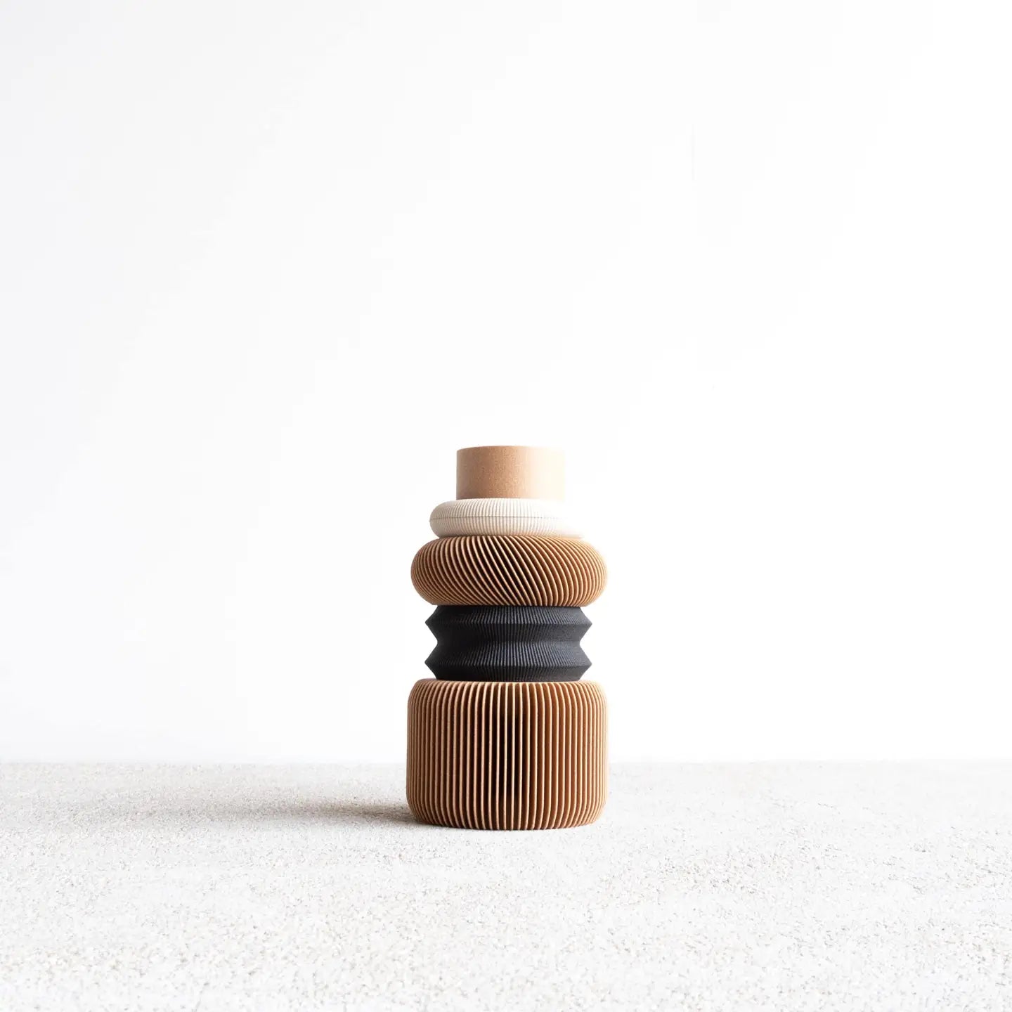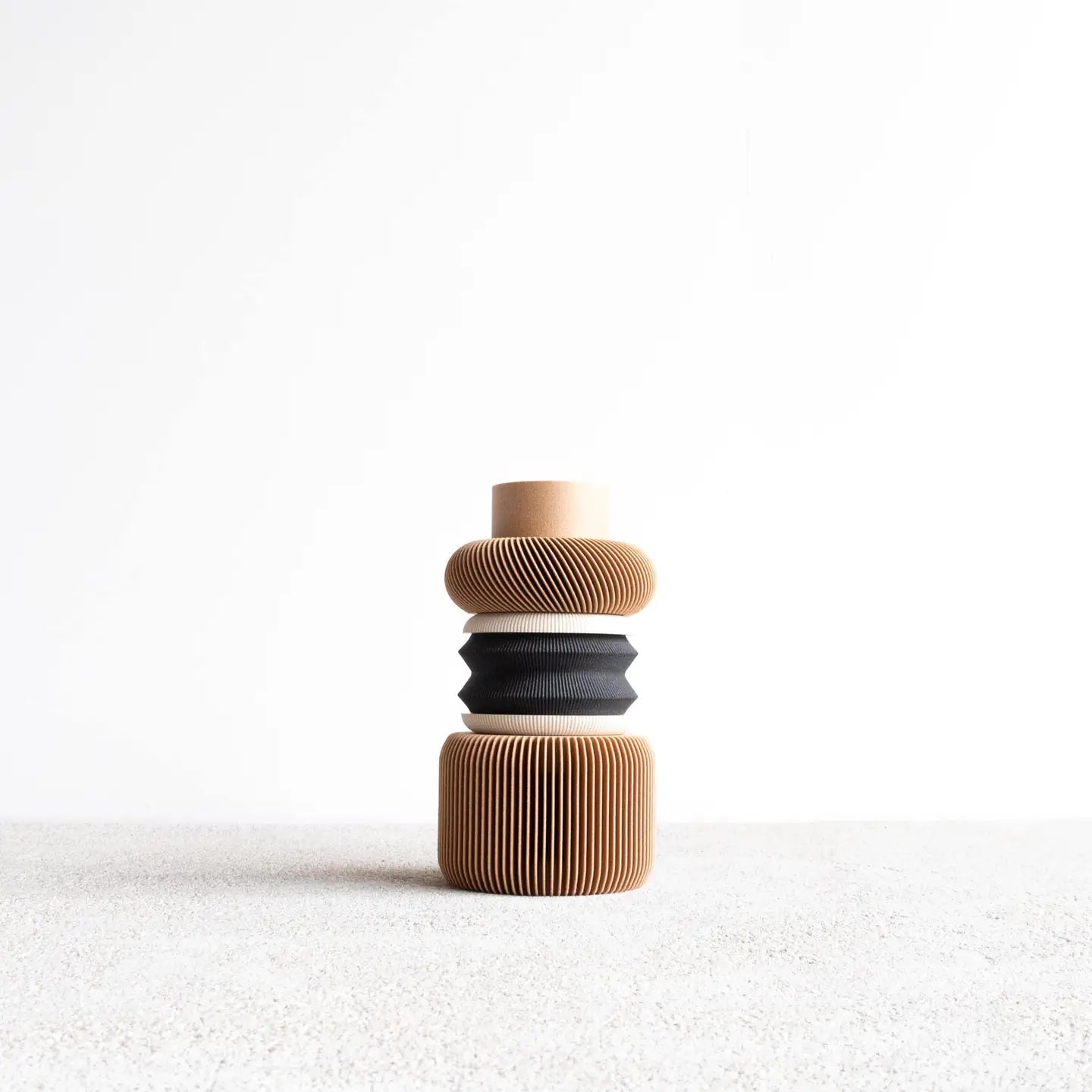 Deze vaas is modulair! Je kunt het je eigen maken! Speel met de verschillende componenten van deze vaas, pas de volgorde aan en maak je eigen ontwerp.