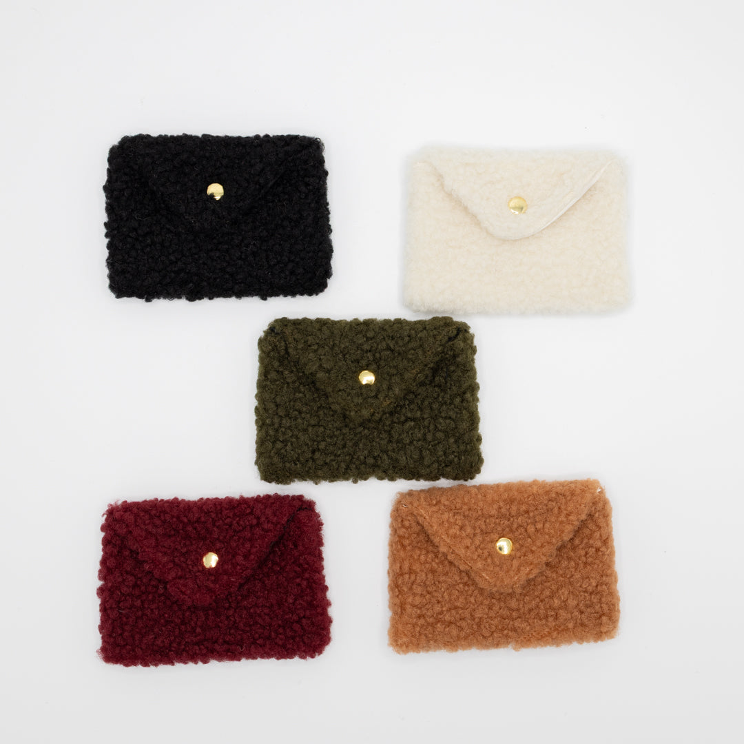 Dit zachte portemonneetje in teddystof is niet alleen handig, maar ook heerlijk aaibaar! Perfect voor het bewaren van je bankkaarten, kleingeld, fietssleutel of andere kleine schatten die je graag bij je hebt.