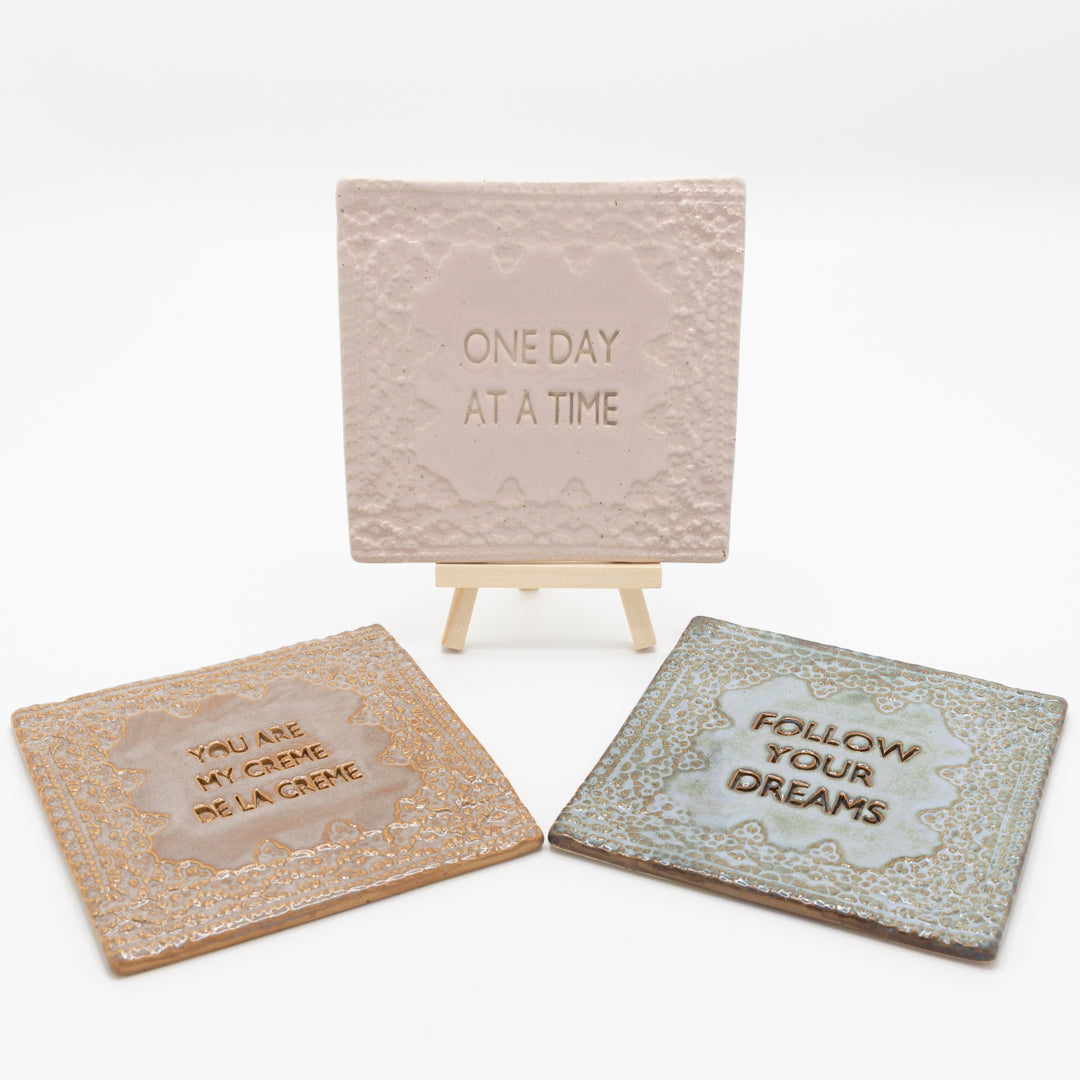 Deze tegel is dé reminder om groot te denken en jouw hart te volgen. Een klein gebaar met een groots gevoel. Perfect voor aan je muur, op je bureau of als cadeau voor die ene dromer in je leven.