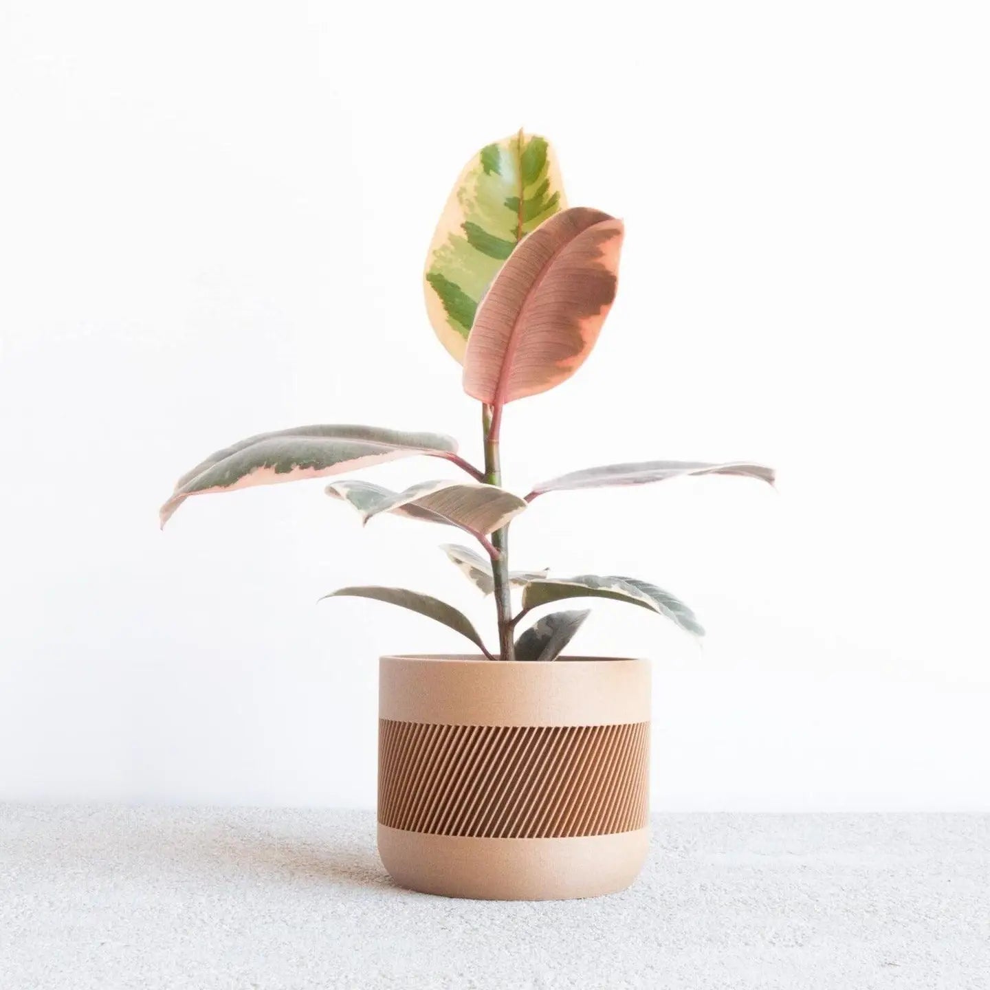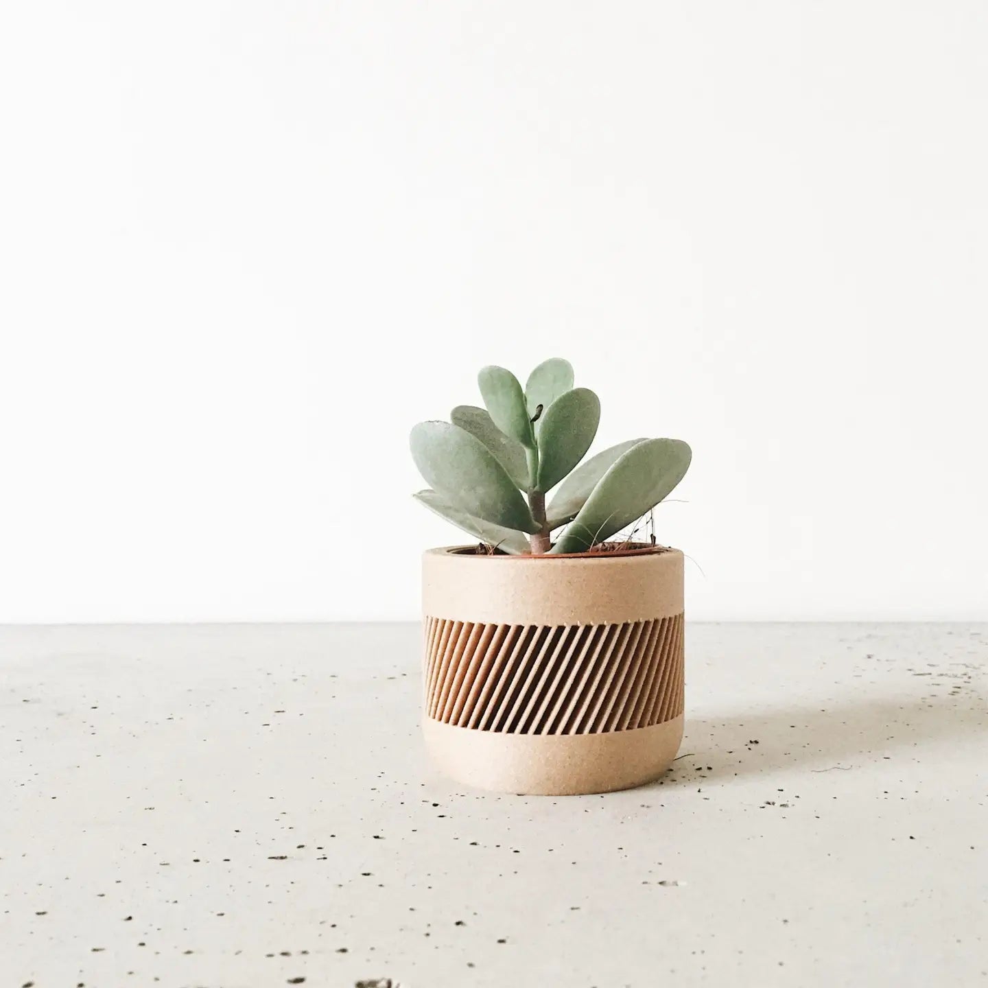 Naast het decoreren van je huis met deze sierpot, draag je ook zorg voor onze planeet. Deze plantenpot is gemaakt uit milieuvriendelijk materiaal: een mix van gerecycleerde houtvezels en bioplastic (gemaakt uit maïs!). Dit materiaal is vederlicht en heeft de uitstraling en het gevoel van ruw hout.