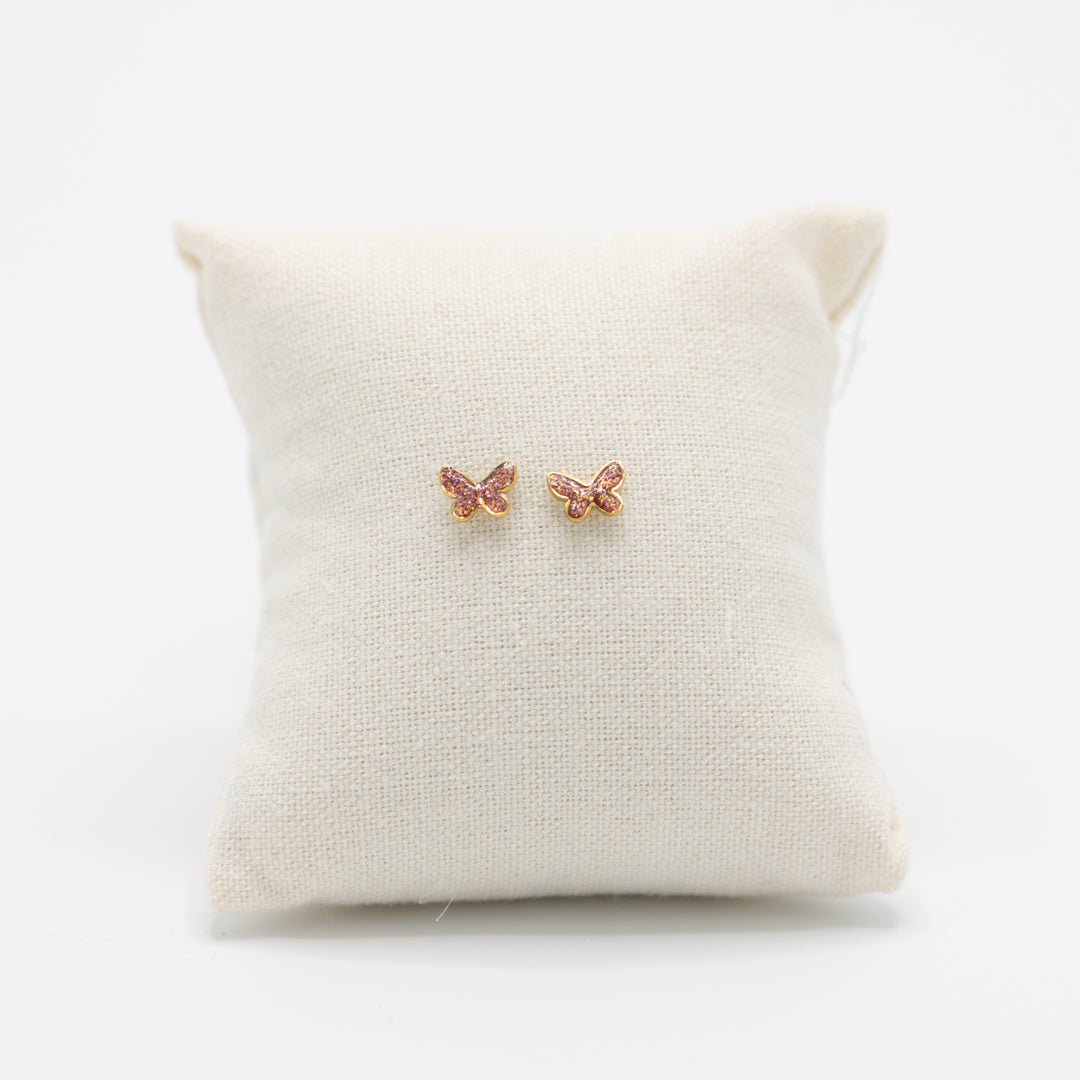 Een paar roze shiny vlindertjes - ideaal om te combineren met een vlindertjesarmbandje (setje).