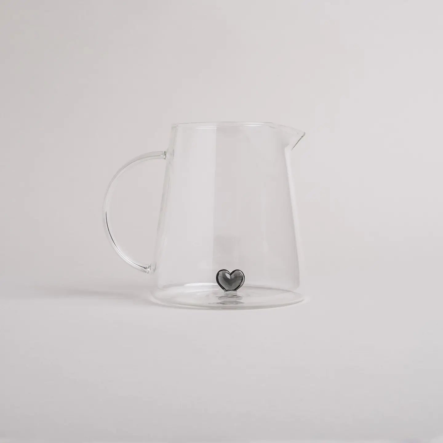 Deze glazen waterkan met 3D zwart hartje brengt instant good vibes aan tafel.