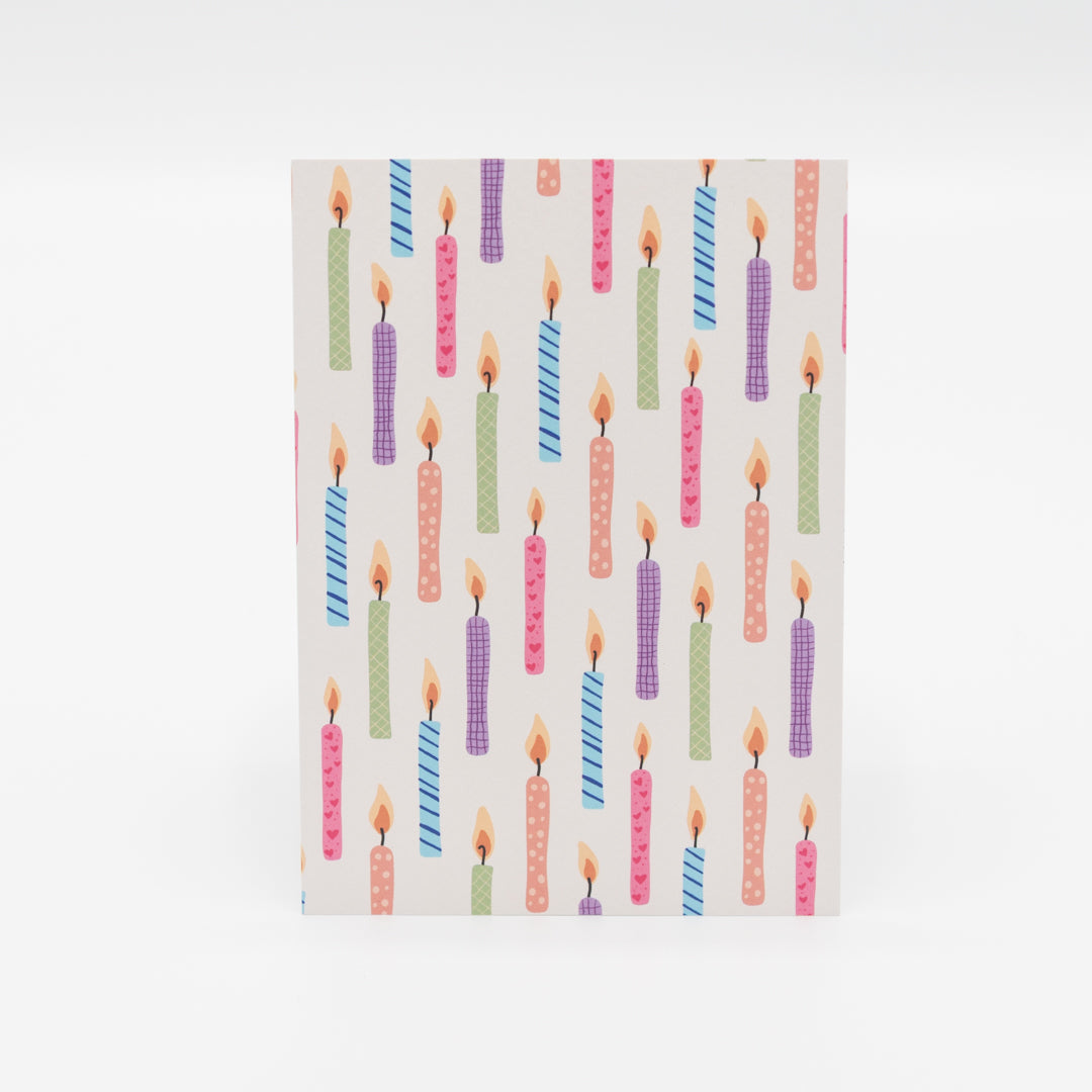Verras de jarige met deze sfeervolle verjaardagskaart vol vrolijke kaarsjes! Het ontwerp brengt meteen een feestelijk gevoel over β alsof je een stukje taart en gezelligheid per post stuurt.