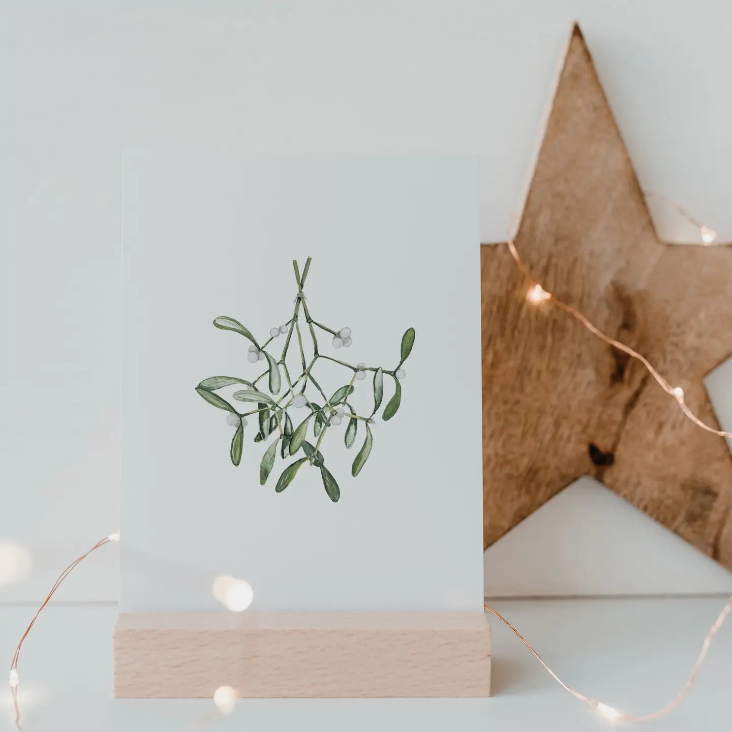 Onze aquarelkaart Maretak is een subtiele warme kerstkaart.