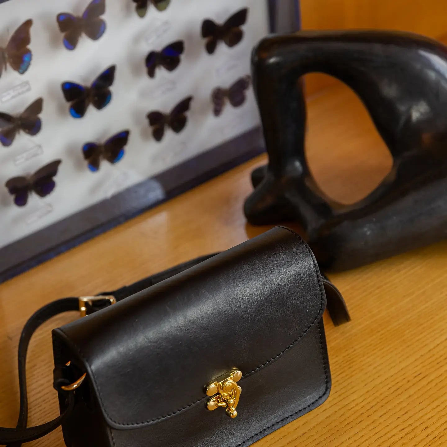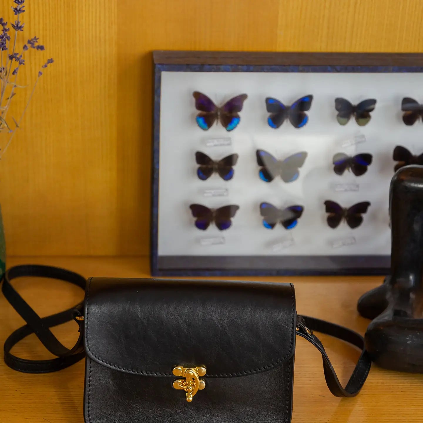 Deze zwarte handtas is het toonbeeld van eenvoud met karakter. De tijdloze en trendy stijl, gecombineerd met een gouden touch, maakt deze tas tot een onmisbaar accessoire voor een elegante en modieuze look.