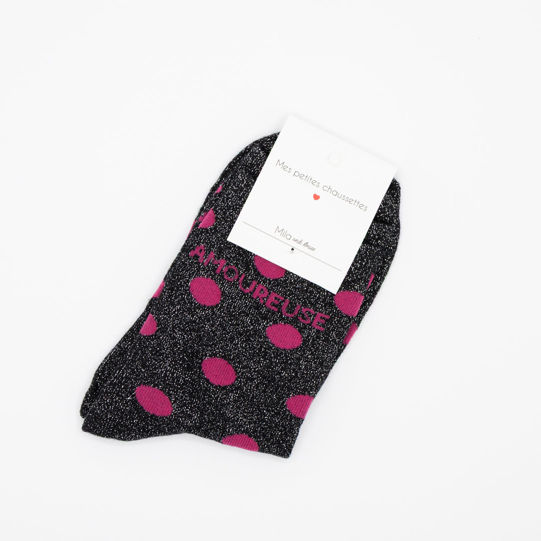 Zwarte, hippe sokken met opschrift AMOUREUSE