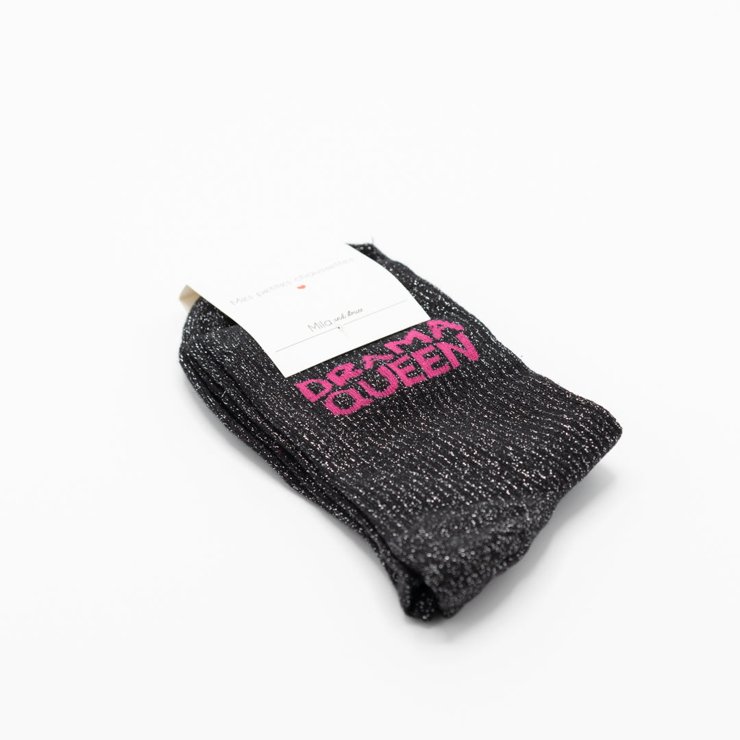 Zwarte hippe sokken met opschrift DRAMA QUEEN